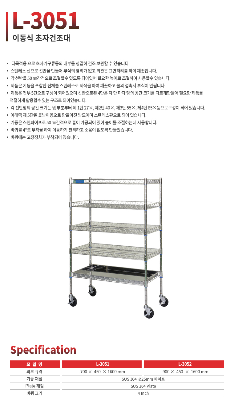 바퀴 부착형 초자건조대