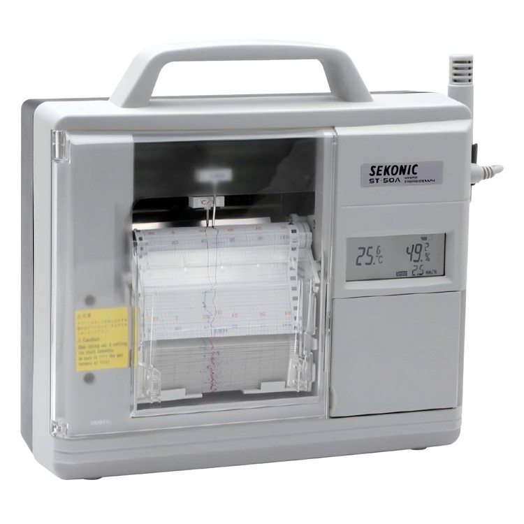 폭 100mm의 기록지로 온도는 1C, 습도는 1% RH 단위로 기록 가능합니다