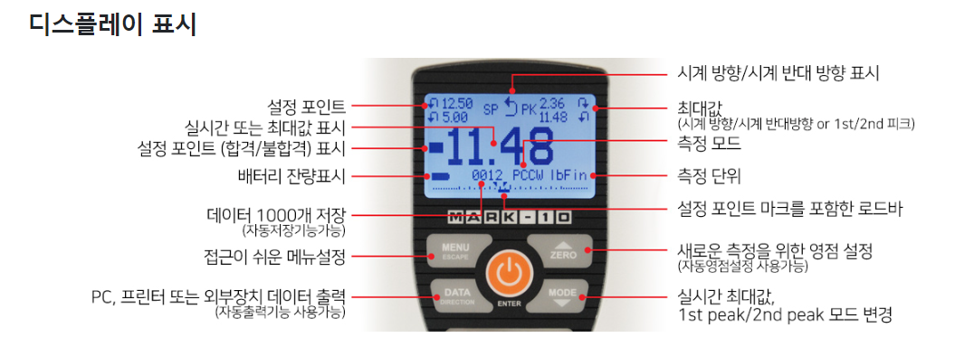 | 측정 단위 | ozFin, lbFin, kgFcm, Nm, Ncm | |||