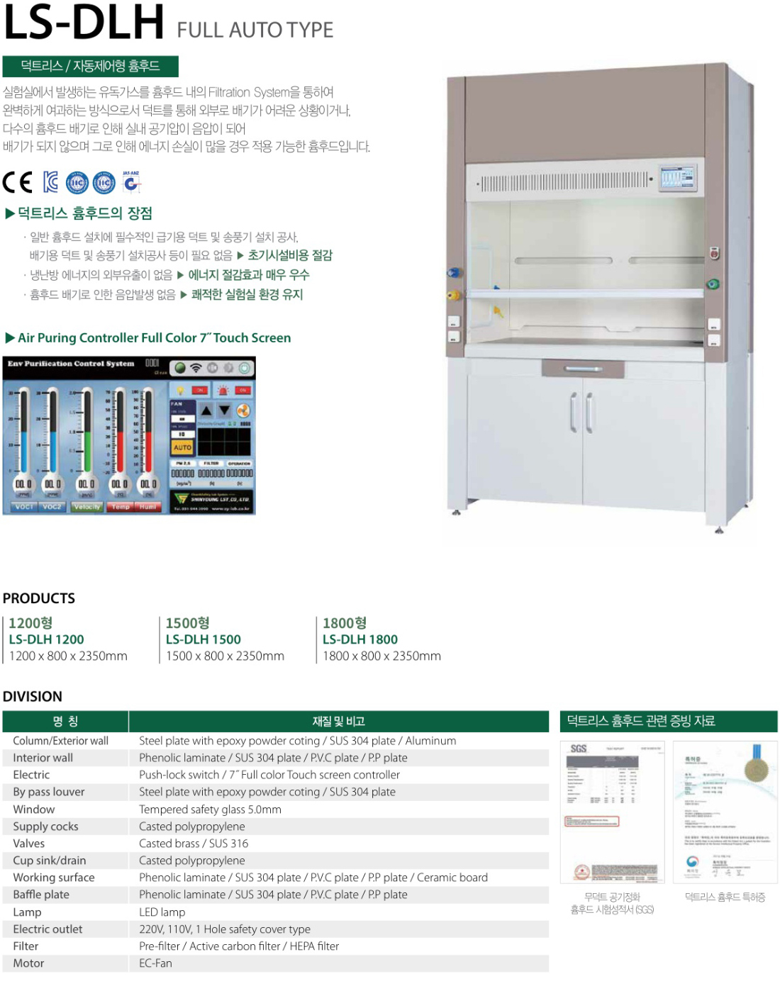 실험실에서 발생하는 유독가스를 후드 내의 Filter를 통해서 여과하는 방식으로 덕트를 통해 외부로 배기가 어려운 상황이거나, 다수의 흄후드의 배기로 실내 공기압이 음압으로 배기가 안 되고, 그로 인해 에너지 손실이 많을 경우 적용 가능합니다.