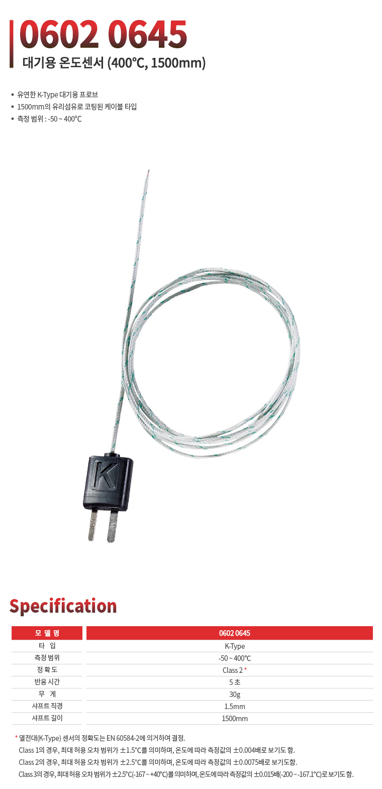 -50℃~ 400℃, 1500mm, K-type