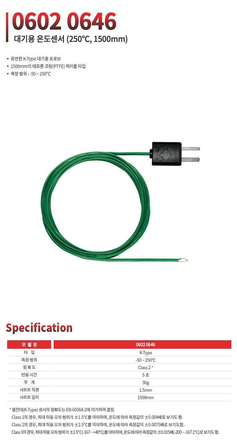 -50℃~ 250℃, 1500mm, K-type