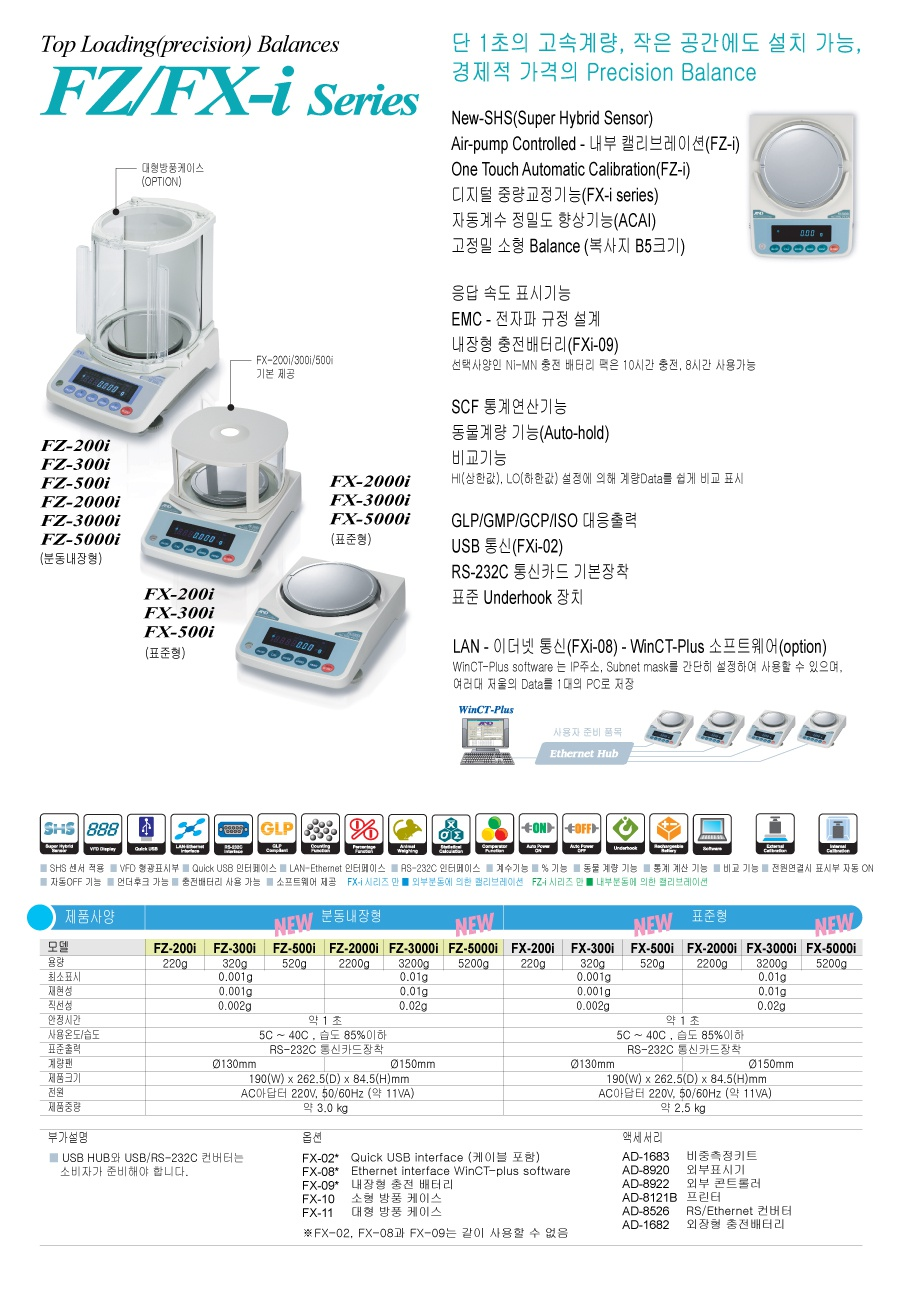 0.001 g ~ 520g, 분동 외장형