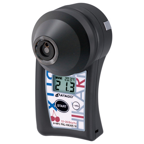 ![]() | 간단한2단계측정방법 과일에 대거나 없은 뒤에 키를 누르면 숫자가 표시됩니다。측정 완료 또는 오류 시 부저가 울리므로 측정 가능 여부를 확인할 수있습니 다. 백라이트를 탑재하여 어두운 장소에서도 측정이 가능합니다. | ![]() | ELI 기능 탑재 PAL-HIKARi 센서는 외광의 영향을 잘 감지 해주는 ELI 기능이 탑재되어 있어 야외에서나 과실이 나무에 달린 상태에서도 측정할 수 있 습니다. 외부광이 감지되면 "nnn"을 표시합니 다. |