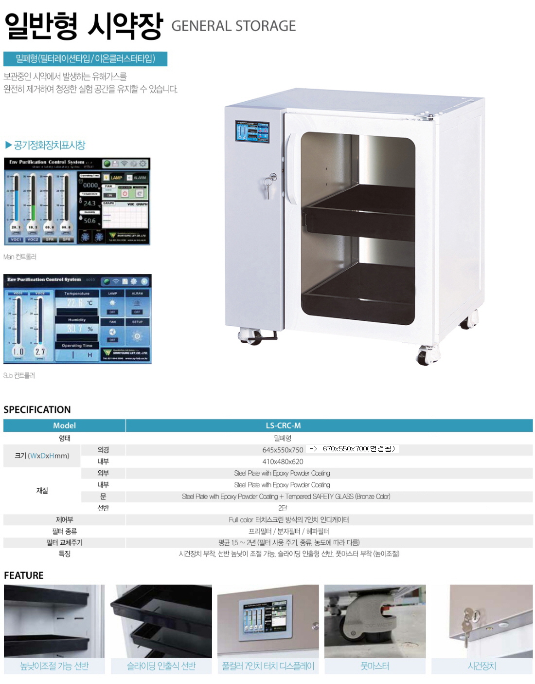 보관중인 시약에서 발생하는 유해가스를 완전히 제거하여 청정한 실험공간 유지.